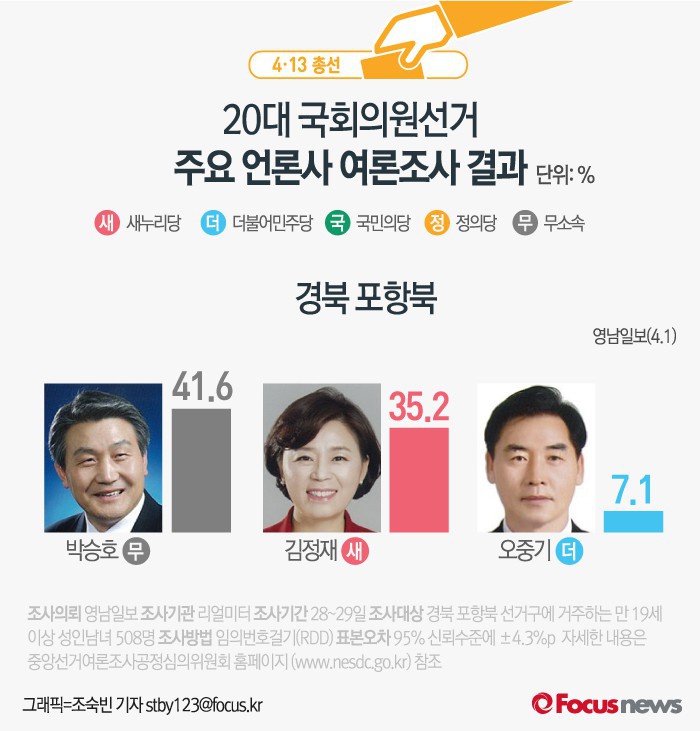 [그래픽] 4.13총선 경북 포항북 여론조사 결과