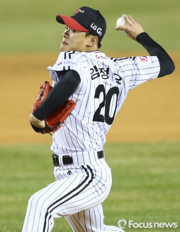 (서울=포커스뉴스) 1일 서울 잠실구장에서 열린 2016프로야구 개막전 한화-LG 경기에서 LG 투수 임정우가 투구하고 있다.