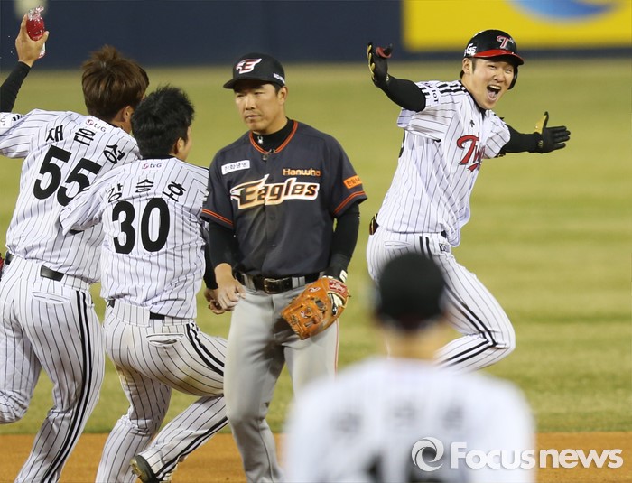 | △ 환호하는 LG 선수들 |