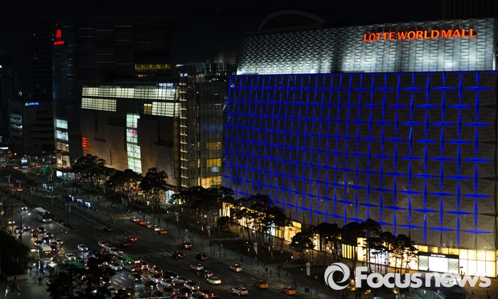 (서울=포커스뉴스) 세계 자폐인의 날인 2일 오후 서울 송파구 롯데월드타워의 건물 외벽에 파란색 LED 조명이 빛을 밝히고 있다.