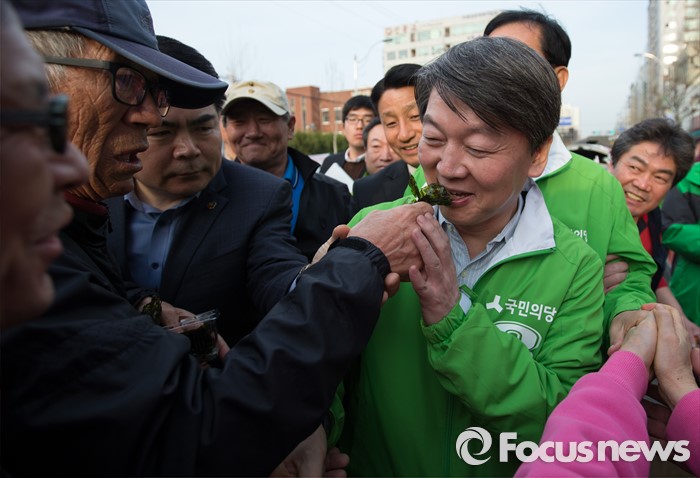 안 공동대표는 기자회견 이후 구희승(전남 순천)·정인화(광양·곡성·구례) 후보 지원유세에 나선다. 또한, 오후에 전남 여수를 찾아 이용주(여수갑)·주승용(여수을) 후보 지원유세를 이어갈 예정이다.안철수 국민의당 상임공동대표가 1일 오후 인천시 부평구 부평 4동에서 문병호 부평구갑 후보 지원 유세를 하던 중 한 노인이 안 대표에게 김을 먹이려하고 있다. 2016.04.01 김흥구 기자