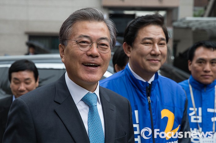 (서울=포커스뉴스) 선거운동이 시작되고 첫 주말을 맞은 3일 오전 문재인 전 더불어민주당 대표가 서울 동작구 신대방성당에서 김병기 더불어민주당 동작갑 후보를 찾아 합동유세를 하고 있다.