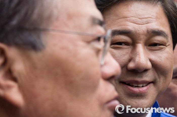 | △ 문재인 바라보는 김병기 더민주 동작갑 후보 |