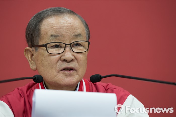 (서울=포커스뉴스) 강봉균 새누리당 공동선대위원장이 3일 오전 서울 영등포구 새누리당 당사에서 경제정책 3·4호 공약을 설명하고 있다.
