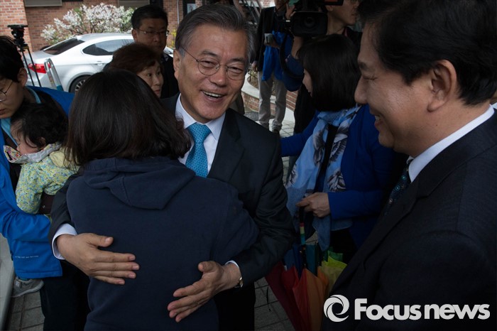 | △ 지지자들과 포옹하는 문재인 |