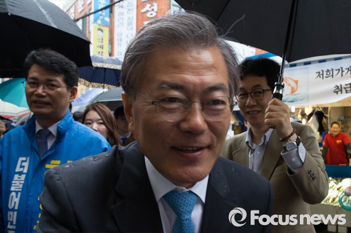 (서울=포커스뉴스) 선거운동이 시작되고 첫 주말을 맞은 3일 오후 문재인 전 더불어민주당 대표가 서울 동작구 남성시장에서 허동준 더불어민주당 동작을 후보와 합동유세를 하고 있다.