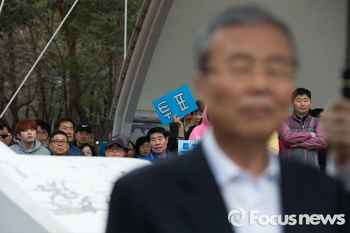 (서울=포커스뉴스) 3일 오후 서울 강서구 방화근린공원 일대에서 김종인 더불어민주당 비대위 대표 겸 선대위원장이 진성준 강서을 후보와 함께 유세를 하고 있다.