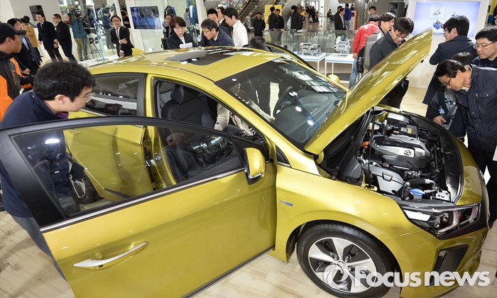 전기차 모터는 전기차의 핵심 구동장치로, 현재 세계 차량용 모터시장은 엠비아이와 계약을 체결한 B사를 비롯, 변속기 회사인 ZF, 자동차 제조사인 GM, 혼다, 도요다, 포드, 테슬라 등 자동차 업계 공룡기업들이 협력사들과 공동전선을 구축해 치열한 각축전을 벌이고 있는 블루오션이다. 국내에는 LG이노텍, 현대모비스, S&T모티브 등이 매년 엄청난 개발비를 투자해 전기차용 모터 개발에 총력을 기울이고 있는 상태다.(제주=포커스뉴스) 18일 오전 제주 서귀포 제주국제컨벤션센터에서 열리고 있는 2016 국제전기자동차엑스포에서 관람객들이 현대 전기자동차 '아이오닉 일렉트릭'을 살펴보고 있다. 2016.03.18 김흥구 기자