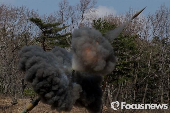 (고성=포커스뉴스) 4일 오전 강원도 고성 야촌리사격장에서 열린 '2016년 전반기 해상사격 훈련'에서 육군 8군단 포병대대 소속 K-9 자주포가 사격을 하고 있다.