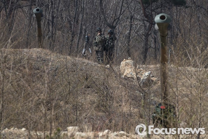 (고성=포커스뉴스) 4일 오전 강원도 고성 야촌리사격장에서 열린 '2016년 전반기 해상사격 훈련'에서 육군 8군단 포병대대 소속 장병들이 155mm 견인포로 훈련을 하고 있다.