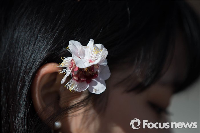 (서울=포커스뉴스) 하늘이 차츰 맑아지는 절기 '청명'인 4일 오전 서울 영등포구 윤중로 일대에서 한 관광객이 벚꽃놀이를 즐기고 있다.