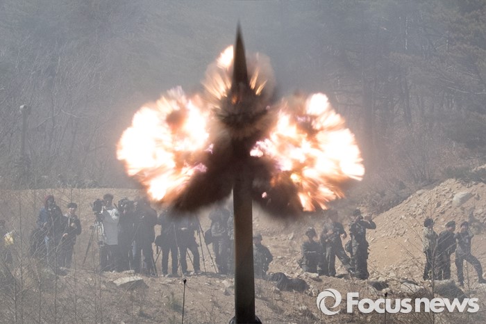 (고성=포커스뉴스) 4일 오전 강원도 고성 야촌리사격장에서 열린 '2016년 전반기 해상사격 훈련'에서 육군 8군단 포병대대 소속 K-9 자주포가 사격을 하고 있다.