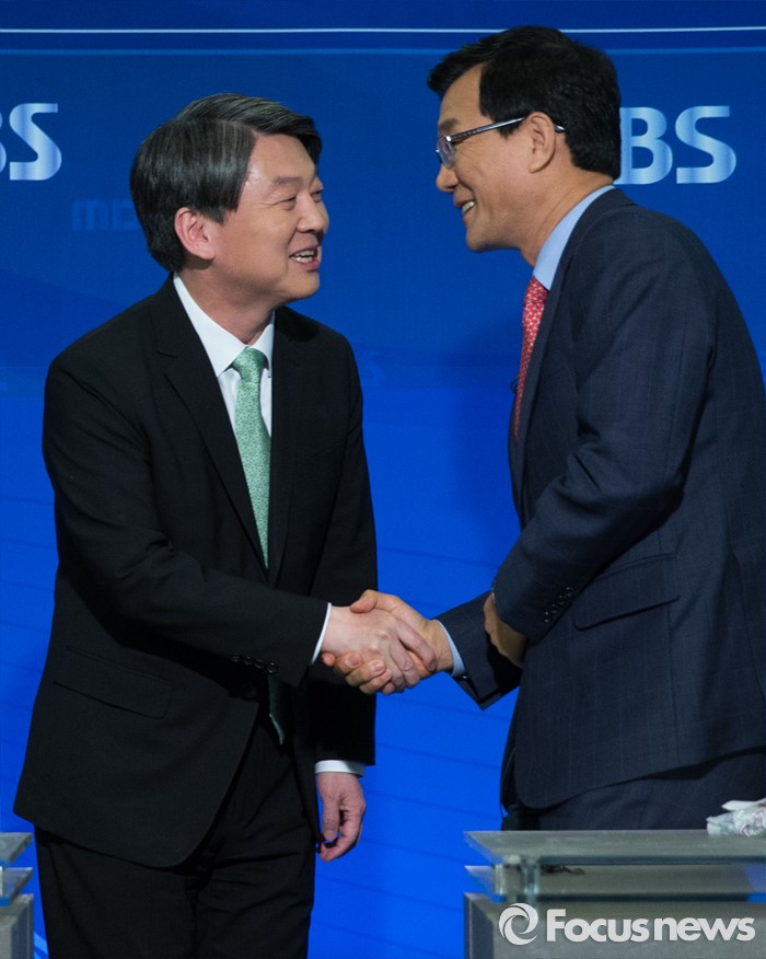 | △ 초청 토론회에서 인사 나누는 안철수 |