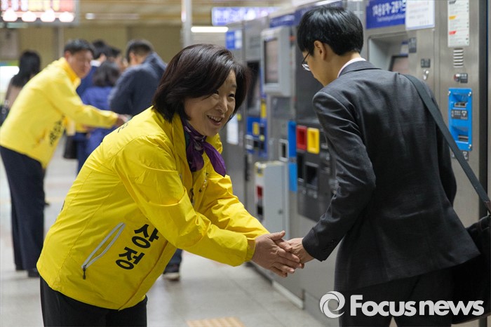 이번 여론조사는 1~2일 경기 고양갑 선거구 거주 만 19세 이상 남녀 506명을 대상으로 해 유선전화면접·인터넷 조사 방식으로 진행됐다. 표본오차는 95% 신뢰수준에 ±4.4%포인트다. 자세한 내용은 중앙선거여론조사공정심의위원회 홈페이지(www.nesdc.go.kr)에서 찾아볼 수 있다.(고양=포커스뉴스) 1일 오전 고양시 덕양구 삼송역에서 심상정 정의당 대표 고양갑 후보가 출근길 선거유세를 하고 있다. 2016.04.01 이승배 기자