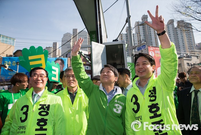 (서울=포커스뉴스) 안철수 국민의당 상임공동대표가 4일 오후 서울 성동구 금남시장 로터리에서 정호준 성동구을 후보 지원유세를 하고 있다.