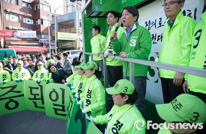 (서울=포커스뉴스) 안철수 국민의당 상임공동대표가 4일 오후 서울 성동구 금남시장 로터리에서 정호준 성동구을 후보 지원유세를 하고 있다.