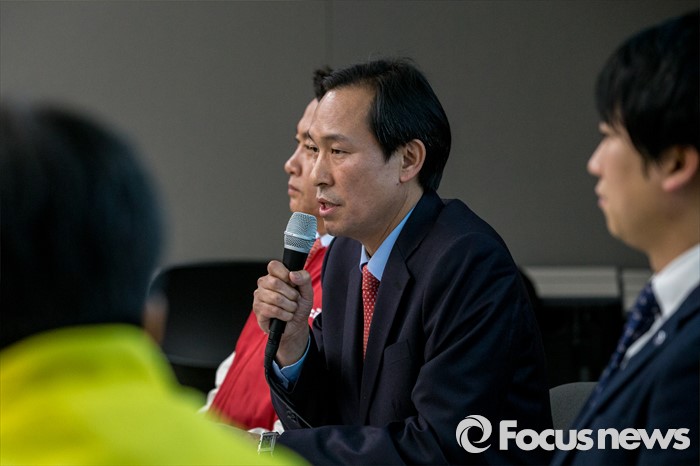 (서울=포커스뉴스) 더불어민주당 서대문갑 우상호 후보가 4일 오후 서울 서대문구 연세대학교에서 열린 '제20대 국회의원 선거 서대문갑 후보자 토론회'에 참석해 공약 발표를 하고 있다.