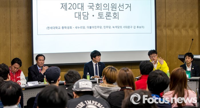 (서울=포커스뉴스) 민주당 서대문갑 이종화 후보가 4일 오후 서울 서대문구 연세대학교에서 열린 '제20대 국회의원 선거 서대문갑 후보자 토론회'에 참석해 공약 발표를 하고 있다.