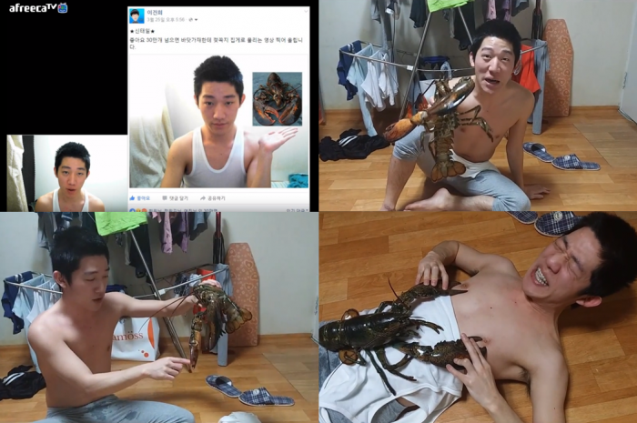 (서울=포커스뉴스) 지난 4월3일, SNS 스타 신태일(본명 이건희)이 다시 네티즌들의 주목을 받고 있다. 지난 1월에는 '자동차 바퀴에 깔리기' 영상으로, 지난 2월에는 '불똥으로 세수하기' 영상으로 네티즌들 사이에서 화제가 됐던 이씨가 이번에는 '바닷가재한테 젖꼭지 물리기' 영상을 올린 것이다.