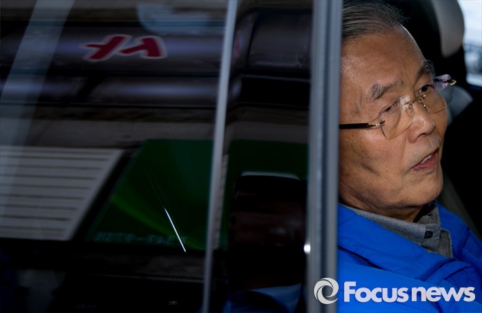 (아산=포커스뉴스) 5일 오전 충남 아산시 배방읍사무소 앞 인근 거리에서 김종인 더불어민주당 비대위 대표 겸 선대위원장이 강훈식 아산을 후보의 지원유세를 마친 뒤 차량에 올라 이동하고 있다.