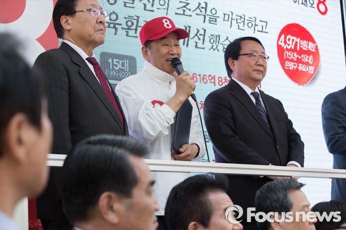 (서울=포커스뉴스) 은평을 무소속 이재오 후보가 5일 오전 서울 은평구에서 거리 유세를 하고 있다.