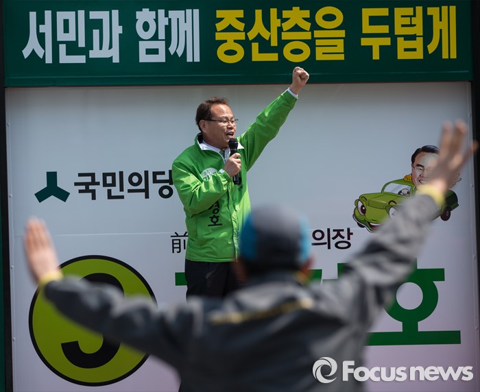 (의정부=포커스뉴스) 김경호 국민의당 의정부갑 후보가 5일 오후 의정부시 태평로 제일시장 앞에서 선거 유세를 하고 있다.
