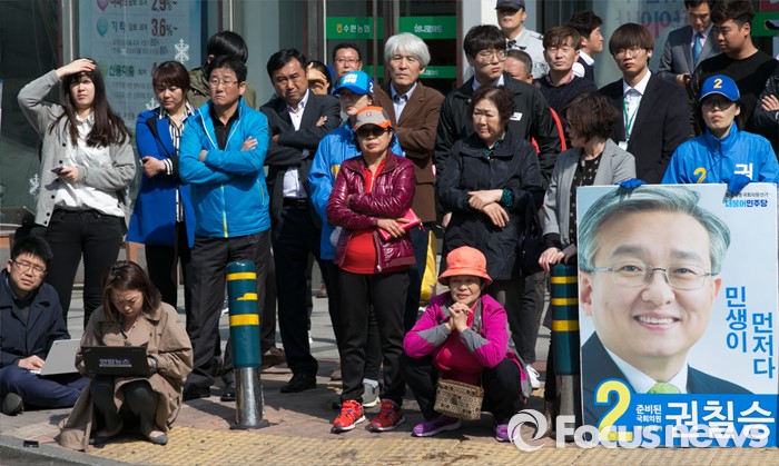 (화성=포커스뉴스) 5일 오후 경기도 화성 봉담읍 하나로마트 앞에서 시민 및 지지자들이 더불어민주당 화성지역 합동유세를 지켜보고 있다.