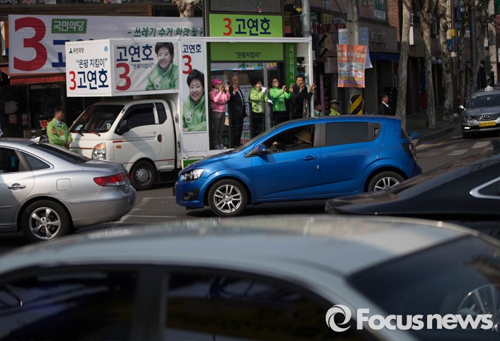 (서울=포커스뉴스) 국민의당 은평을 고연호 후보가 5일 오후 서울 은평구 갈현동 인근에서 유세를 하고 있다.