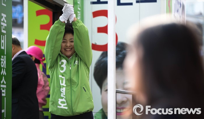 (서울=포커스뉴스) 국민의당 은평을 고연호 후보가 5일 오후 서울 은평구 갈현동 인근에서 시민들을 향해 유세를 하고 있다.