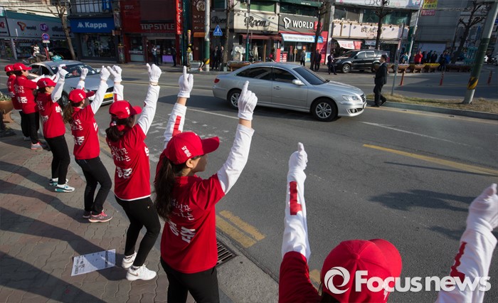 (세종=포커스뉴스) 5일 오후 세종시 조치원읍 조치원역 앞 교차로에서 선거운동원들이 박종준 후보의 지지를 호소하고 있다.