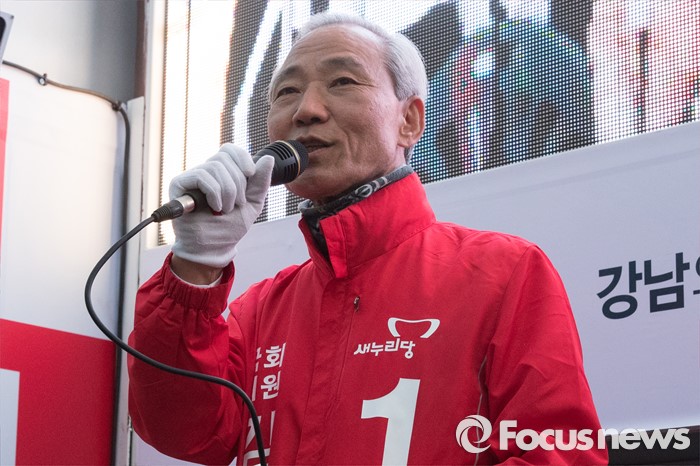 (서울=포커스뉴스) 20대 총선 출마한 김종훈 새누리당 강남을 후보가 5일 오후 서울 강남구 개포주공1단지아파트 인근에서 유권자들에게 지지를 호소하고 있다.