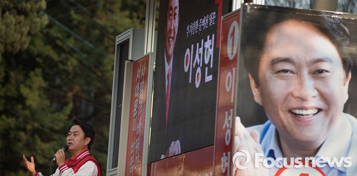 (서울=포커스뉴스) 5일 오후 서울 서대문구 충현동 인근에서 새누리당 서대문갑 이성헌 후보가 유세를 하고 있다.