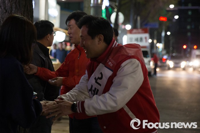 (서울=포커스뉴스) 20대 총선을 8일 앞둔 5일 오후 서울 종로구 통인시장 일대에서 오세훈 새누리당 종로구 후보가 퇴근길 선거유세를 하고 있다.