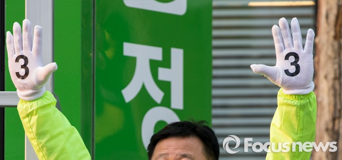 (서울=포커스뉴스) 5일 오후 서울 중구 충정로역 인근에서 열린 정호준 국민의당 중구성동구을 후보 선거유세에 참석한 김용만 국민의당 중구 구의원 후보가 지지를 호소하고있다.