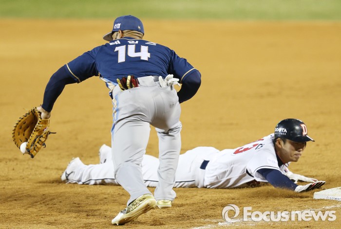 | △ 견제구에 귀루하는 허경민 |