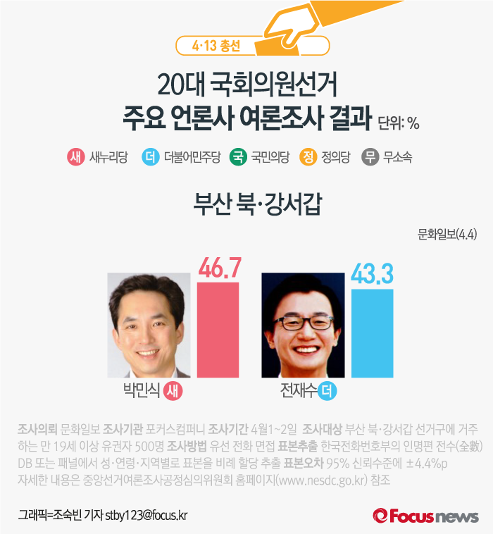 [카드뉴스] 주요언론 각 지역별 여론조사 결과(부산 북·강서갑)