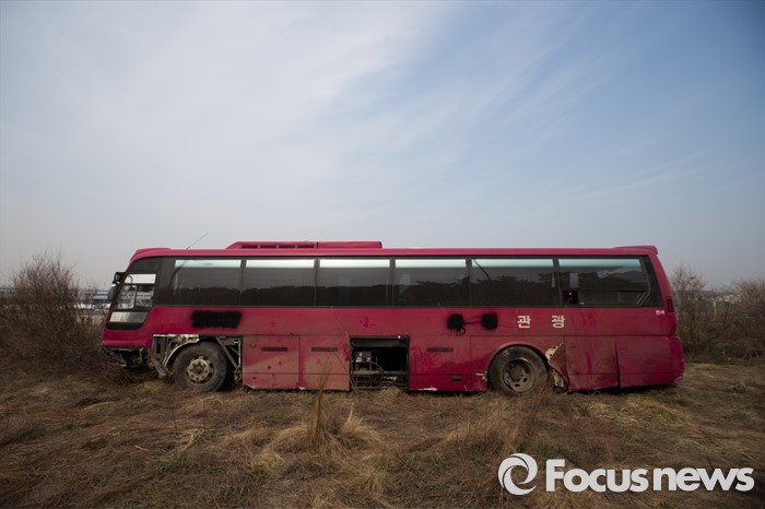 견인 기다리는 사고 버스