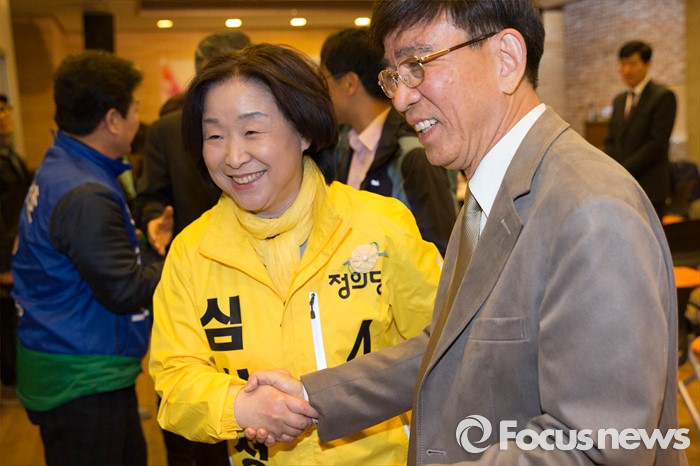 (고양=포커스뉴스) 20대 총선을 일주일 앞둔 6일 오전 고양시 일산동구의 한 교회에서 열린 '100만고양자치연대' 좋은후보 추천식에 참석한 심상정 정의당 고양시갑 후보가 지지자들과 악수하고 있다.