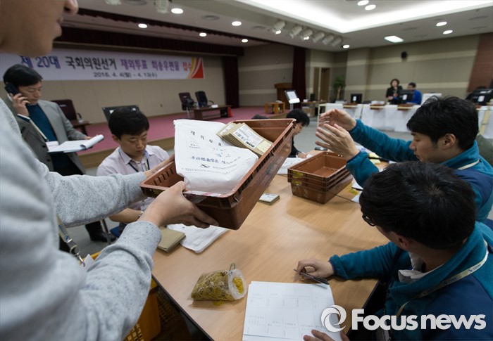 (인천=포커스뉴스) 제20대 국회의원선거 재외투표 우편물 접수 시작일인 6일 오전 인천 중구 국제우편물류센터에서 직원들이 재외투표 회송 우편물을 분류하고 있다.