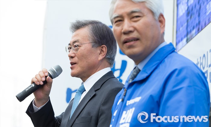 | △ 백군기 후보 지원유세 나선 문재인 |