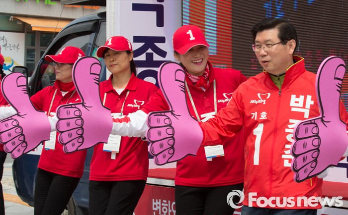 (세종=포커스뉴스) 박종준 새누리당 후보가 6일 오후 세종시 어진동 정부세종청사 인근에서 지지를 호소하고 있다.
