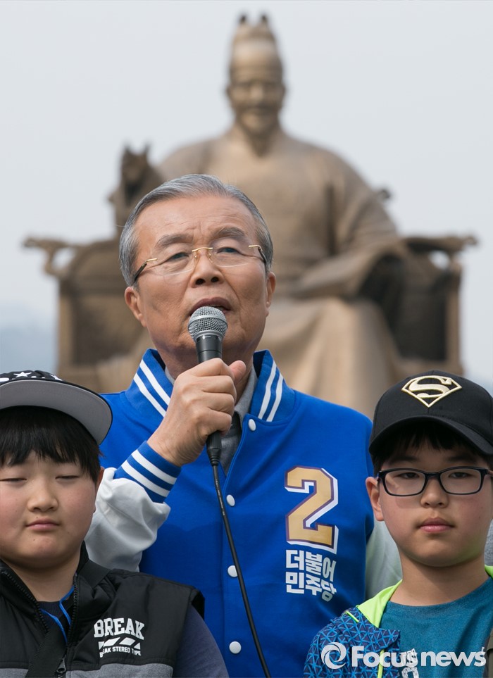 (서울=포커스뉴스) 김종인 더불어민주당 비대위 대표 겸 선대위원장이 6일 오후 서울 광화문광장에서 진행된 20대 총선 사전투표 캠페인에 참석해 인사말을 하고 있다.