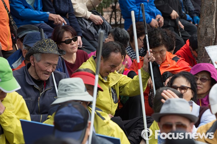 (서울=포커스뉴스) 6일 오후 서울 영등포구 국회의사당역 인근에서 범장애계총선연대 회원들을 비롯한 참석자들이 '장애인 정치 참여보장을 위한 범장애계 총궐기대회'를 하고 있다.