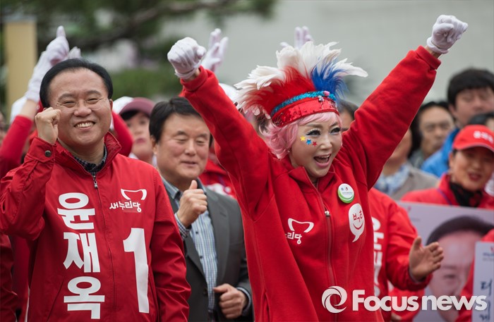 | △ 새누리당 거리유세에서 환호하는 선거운동원 |