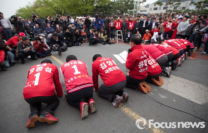 | △ 맨다닥에 절하며 사죄하는 새누리당 후보들 |