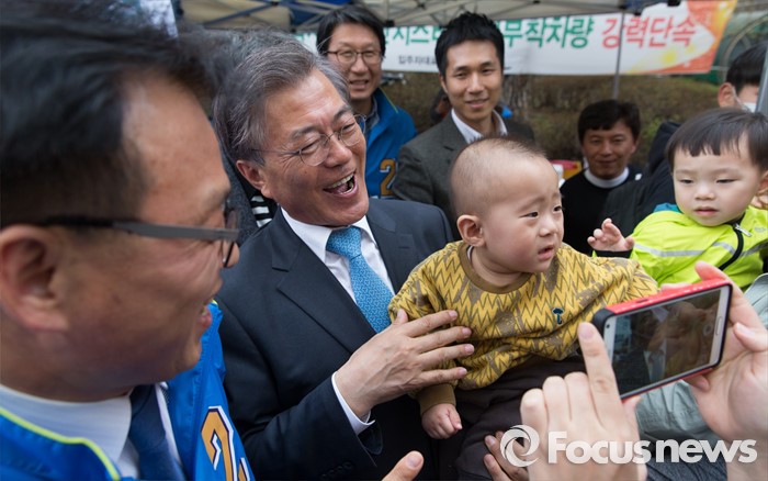 (수원=포커스뉴스) 6일 오후 경기 수원시 영통구 매탄1동 주민센터 앞에서 문재인 더불어민주당 전 대표가 박광온 더민주 수원시정 후보 지원유세를 하고 있다.