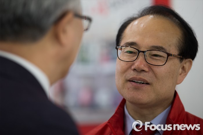 (인천=포커스뉴스) 제20대 총선에 출마한 윤형선 새누리당 계양을 후보가 6일 오후 인천 계양구 홈플러스 계산점에서 선거운동을 하고 있다.