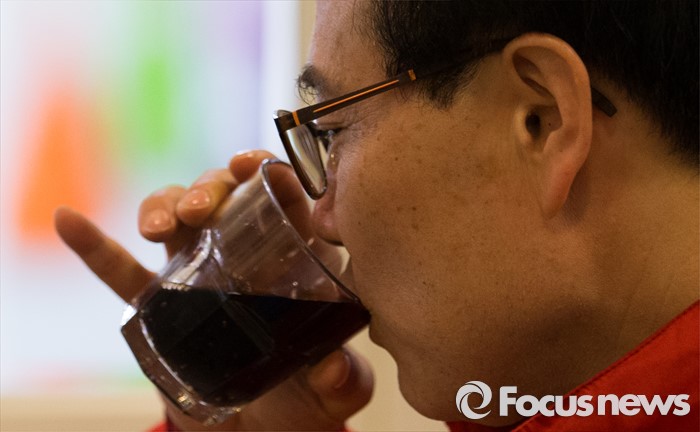 (인천=포커스뉴스) 제20대 총선에 출마한 윤형선 새누리당 계양을 후보가 6일 오후 인천 계양구 홈플러스 계산점에서 선거운동 중 음료수를 마시고 있다.