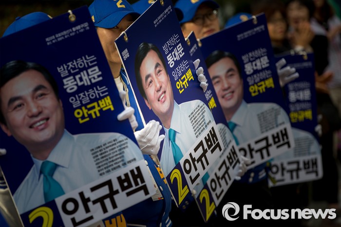 (서울=포커스뉴스) 6일 오후 서울 동대문구 휘경동 일대에서 안규백 더불어민주당 동대문구갑 후보 선거운동원들이 선거운동을 하고 있다.