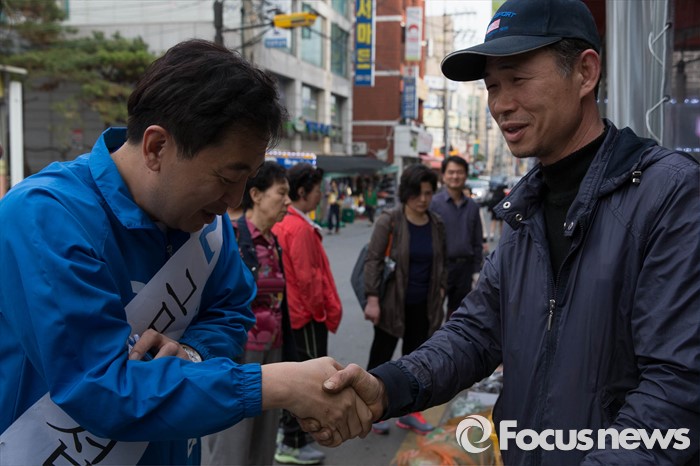 (서울=포커스뉴스) 20대 총선을 일주일 앞둔 6일 오후 서울 강서구 화곡8동 주민센터 일대에서 금태섭 더불어민주당 강서구갑 후보가 거리유세를 하고 있다.